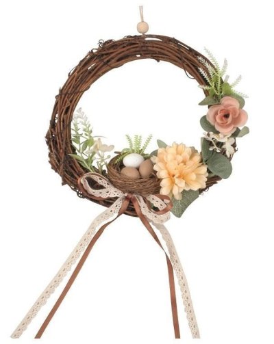 Veniec s dekoráciami a hniezdom 20 cm, hnedá stuha