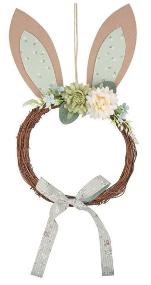 Veniec s filcovými ušami a mašľou 23 x 42 cm, zelený