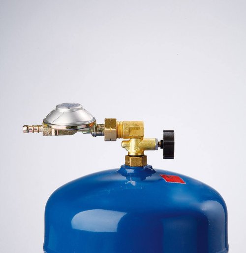Pripojovací závit na propán-bután fľašu 2 kg a výstup na regulátor tlaku W 21.8 LH. Jednocestný ventil s výstupom z boku. EAN 8590584215645