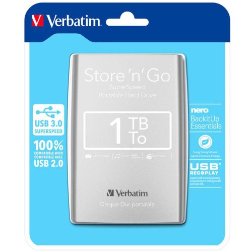 Externý HDD Verbatim Store 'n' Go HDD 2.5" 1TB USB 3.0 strieborný PN 53071