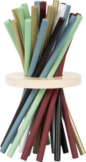 Omrzela Vás bežná verzia mikáda a hľadáte sviežu zábavu? Vyskúšajte jeho nevšedný variant s prírodným dreveným krúžkom. Hádžte kockou a pokúste sa postupne uvoľňovať tyčinky príslušných farieb, kým neopatrnosťou nepohnete s krúžkom, alebo inou než ťahanou tyčinkou. Precvičujte hrou sústredenia, trpezlivosť a zručnosť. Dlhé hodiny hernej zábavy pre celú rodinu sú zaručené! Rozmer tyčinky: 18 x O 0,5 cm Rozmer krúžku: O 9 cm Vek: 4+ Materiál: drevo