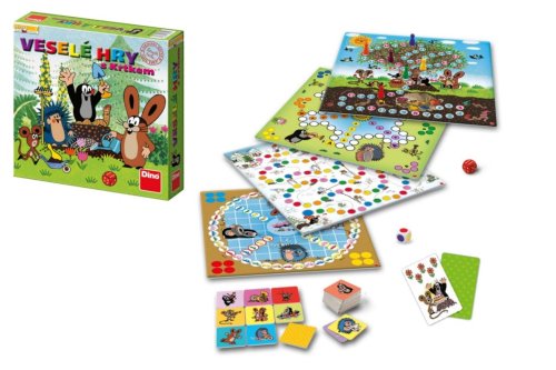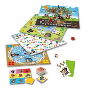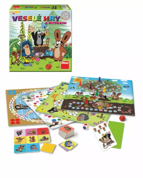 Akonáhle si rozprávkového krtka raz pustíte domov, už ho len ťažko dostanete preč. Deti si ho zamilujú okamžite a vy mu nakoniec podľahnete tiež. Pomôže vám v tom aj balíček 5 stolných hier s obrázkami krtka a jeho kamarátov. Pocvičte s deťmi pamäť nad pexesom, taktiku pri kartovej hre Score alebo si vyberte zo štyroch rôznych dosiek vrátane krtčieho člobrda. Okrem hravosti si deti premŕskajú počítanie, znalosť farieb a nepochybne zapoja aj svoju bujnú fantáziu. Obsah balenia: hracie figúrky v 6 farbách (4 ks od každej farby)4 herné plány1 bodová kocka1 farebná kocka30 hracích kariet48 pevných kartónových kartičiek pexesa Hlavné vlastnosti: zábava pre celú rodinuvhodné pre deti o 3 rokovvyrobené v ČR