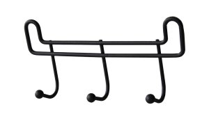 Kvalitný čierno lakovaný vešiak s 3 háčikmi. Na konci háčikov sú guličky. Celková dĺžka 16 cm, výška 7 cm a hĺbka 4 cm. EAN 8001579925208