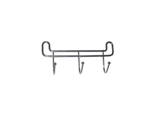 Pochrómovaný vešiak s 3 háčikmi. Na konci háčikov pochrómované guličky. Celková dĺžka 16 cm. EAN 8001579710248