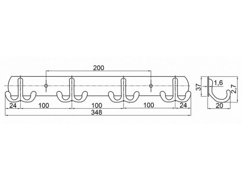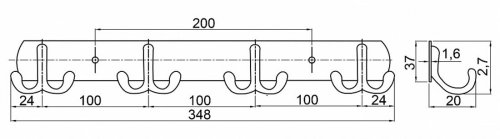 Vešiak 4 x dvojháčik CYRIL, Cr. balenie obsahuje: - 1 x vešiak - 2 x vrut - 2 x hmoždinka - 2 x krytka na vruty