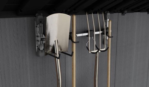 Uľahčite si skladovanie záhradného náčinia s dlhou násadou, ako sú vidly, lopaty alebo napríklad hrable. Zaobstarajte si multifunkčný vešiak Multi Purpose Wall Hanger od značky Keter. Namontujete ho do akéhokoľvek záhradného domčeka Keter (okrem domčekov Factor) a zavesíte naň záhradné potreby. Jeden hák unesie až 9 kg váhy. Celková nosnosť vešiaka je 36 kg .