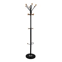 Stojací vešiak v klasickom dizajne na vrchné oblečenie Ideálne do interiéru domu, čakárne alebo kancelárie Vyrobené z odolnej práškovo lakovanej ocele Má 14 drevených háčikov na zavesenie oblečenia Vstavaný …