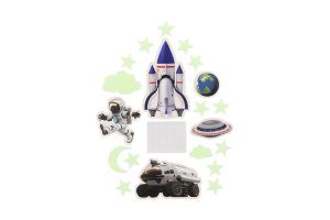 Súprava obsahuje krásne vesmírne motívy, ktoré sa po nasvietení v tme rozsvietia a vytvoria očarujúcu atmosféru plnú hviezd a planét. Tieto dekorácie sú ideálne pre malých objaviteľov vesmíru, ktorí si chcú priniesť kúsok galaxie domov. Svietiace vesmírne motívy nielenže spríjemnia večerné hodiny, ale tiež pomôžu deťom zaspať v kúzelnom prostredí plnom hviezd. Rozmery balenia 17 x 25 x 2 cm. Vhodné pre deti od 3 rokov.