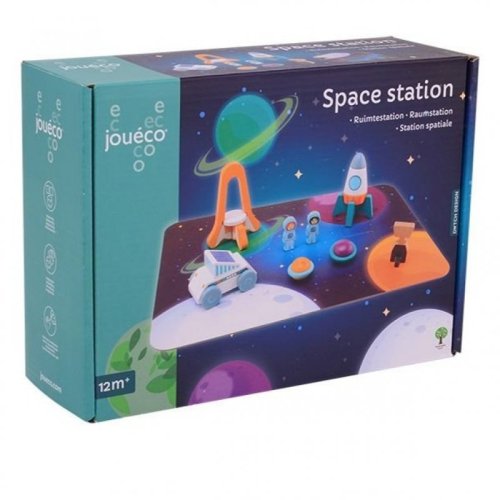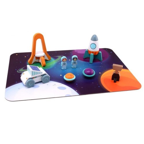 • základom je vesmírna stanica tvorená 6ks dielikov puzzle (pevný kartón) + drevené príslušenstvo