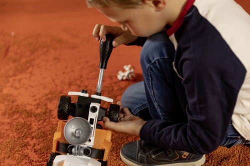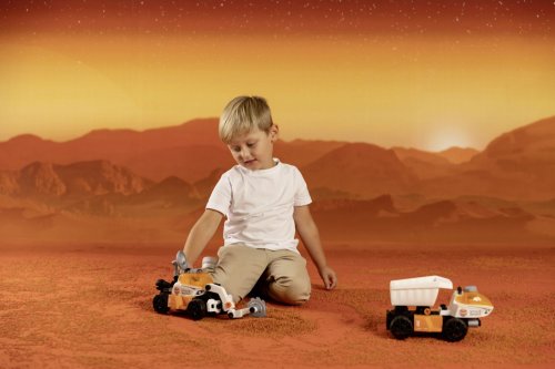 Postav svoj vlastný vesmírny Rover. Balenie obsahuje skrutkovač a 50 dielov, vďaka ktorým je možné zostaviť 3 rôzne prevedenia vozítka. Súčasťou je aj pohyblivá figúrka kozmonauta, ktorý má ruku - skrutkovač. Rozmery vozítka: 25 x 13 x 16,5 cm.