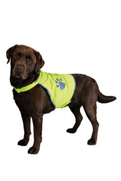 Bezpečnostná vesta pre psov vyrobená z polyesteru. Táto vesta zaistí bezpečné venčenie vášho psa predovšetkým za tmy a zo šera. Obšitá reflexným pásikom s potlačou labky. Plynulo nastaviteľné na bruchu a krku so zapínaním na suchý zips. Neobmedzuje psa v pohybe.