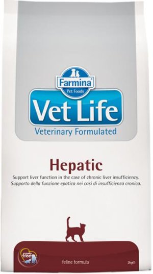 Farmina Vet Life Hepatic je kompletné dietetické krmivo pre mačky, určené na podporu pečeňových funkcií v prípade chronickej pečeňovej nedostatočnosti. Krmivo obsahuje znížené množstvo vysoko kvalitných bielkovín a vysokú koncentráciu esenciálnych mastných kyselín.