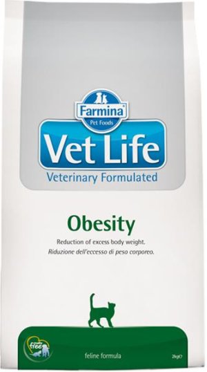 Farmina Vet Life Obesity je kompletné dietetické krmivo pre mačky určené na zníženie nadmernej telesnej hmotnosti.