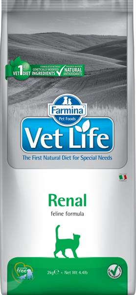 Farmina Vet Life Renal je kompletné dietetické krmivo pre mačky určené na podporu funkcie obličiek v prípade chronickej alebo dočasnej obličkovej nedostatočnosti.
