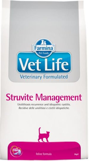 Farmina Vet Life Struvite Management je kompletné dietetické krmivo pre mačky určené na rozpúšťanie a zníženie recidívy tvorby struvitových kameňov. Je vhodné aj pri ochorení dolných močových ciest.
