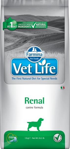 Farmina Vet Life Renal je kompletné dietetické krmivo pre dospelé psy určené na podporu funkcie obličiek v prípade chronickej alebo dočasnej obličkovej nedostatočnosti.