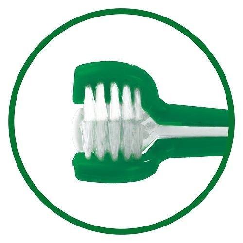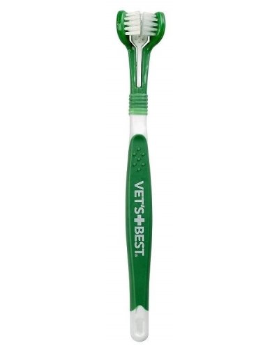 Vet's Best® zubná kefka má tri hlavy, ktoré sa pohodlne prispôsobia tvaru každého zuba a tým efektívne vyčistia celý chrup Vášho psíka. Odporúčame ho používať v kombinácii s dentálnym gélom pre psov Vet's Best.