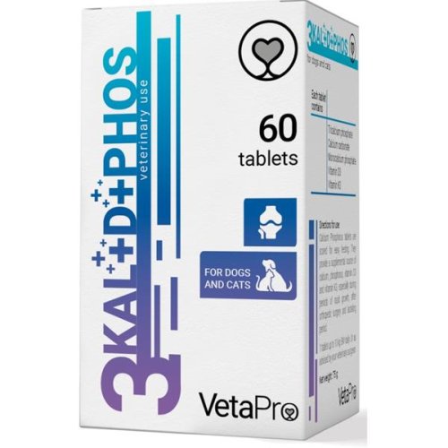 3 Kal D Phos je doplnkové krmivo pre psy a mačky s vápnikom a fosforom, ktoré sa podieľajú na stavbe kostí a zubov. Používa sa počas rastu, gravidity a laktácie. Hlavné prednosti: