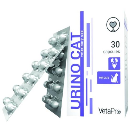 Urino Cat je nutričný doplnok určený pre mačky s infekciami dolných močových ciest – akútnymi, chronickými a rekurentnými zápalmi. Odporúča sa tiež pri kryštalúrii a močových kameňoch, ako aj po katetrizácii a operatívnom odstránení močových kameňov. Prípravok je určený na zachovanie normálnej funkcie močovej sústavy. Extrakt z medvedice lekárskej obsahuje arbutín, ktorý sa v močovej sústave mení na hydrochinón. Hydrochinón je antiseptikum, ktoré pôsobí proti infekciám močovej sústavy. D-manóza je prírodným jednoduchým cukrom, prirodzene sa vyskytujúcim v organizme, ktorý sa úspešne používa pri liečení močových infekcií zapríčinených baktériou E. coli a inými pridruženými baktériami ( Staphylococcus , Streptococcus , Proteus , Klebsiella spp. ). D-manóza sa vstrebáva osemkrát pomalšie ako glukóza. Po jej prijatí do organizmu sa nepremení na glykogén ani sa neukladá v pečeni, ale prechádza priamo do krvného riečišťa. Preto sa D-manóza väčšinou filtruje cez obličky a následne smeruje do močového mechúra. Epiteľ močového mechúra pokrývajú polysacharidy, na ktorých sa svojimi vonkajšími výrastkami zachytávajú baktérie E. coli a spúšťajú infekciu. D-manóza v močovom mechúre nadviaže baktérie E. coli, s ktorými vytvára komplexy. Tie sú následne z tela prirodzene odplavené močom. Glukosamín sulfát je derivátom glukosamínu, ktorý sa získava z exoskeletu rakov a stimuluje syntézu glykozaminoglykánov (GAG). Tie chránia citlivý urotel a zabraňujú baktériám viazať sa na urotelové bunky. Zloženie: výťažok z medvedice lekárskej (Uva ursi) - arbutín 100 mg, D-manóza 80 mg, glukosamín sulfát 70 mg. Dávkovanie: 1 kapsula denne na 5 kg hmotnosti, alebo podľa odporúčania veterinárneho lekára. Na perorálne použitie. Kapsulu je možné podať celú alebo jej obsah primiešať do krmiva. Liek podávajte tak dlho, ako to bude potrebné, alebo podľa odporúčania veterinárneho lekára. Zvieraťu zaistite dostatočné množstvo čistej pitnej vody po celý deň. Skladovanie: Skladujte na chladnom a suchom mieste, mimo dosahu priameho slnečného žiarenia. Uchovávajte mimo dosahu detí. Upozornenie: Určené iba pre zvieratá!