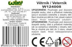 Farebný plastový veterník s priemerom 10 cm pre detskú radosť. Vykúzli úsmev na každej detskej tvári. Vhodný na hru na doma aj ako dekorácia na záhradu. Farebný veterník môžete dať za okno a hneď budete vedieť, aké je počasie. Dĺžka 43 cm. Vhodné pre deti od 3 rokov.