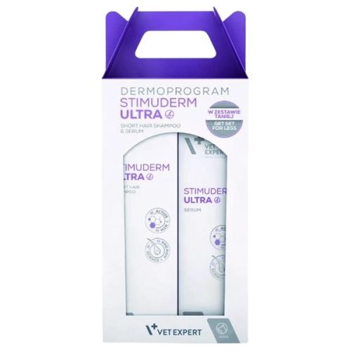 komplexná starostlivosť Stimuderm Ultra je založená na 2 kľúčových a vzájomne prepojených produktoch: dermošampóne a sére, jediný dvojstupňový dermokozmetický program na trhu, ktorý stimuluje opätovný rast srsti a inhibuje proces jej vypadávania, inovatívne zloženie je založené na jej unikátnej molekule ACTIVE NTM ® klinickými štúdiami*, výhodnejšia cena v duopacku.
