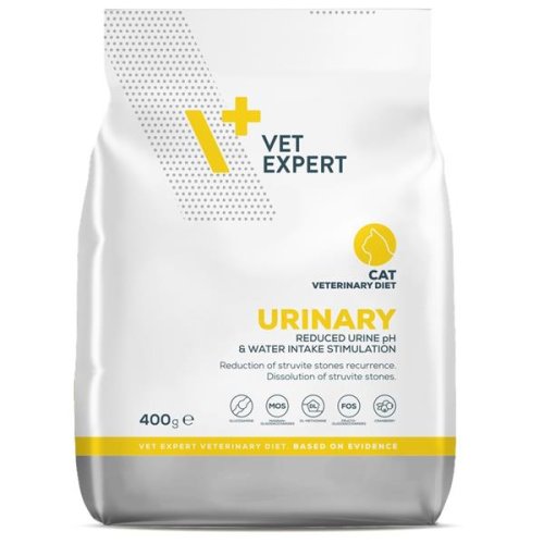 Veterinárne diéty svojmu maznáčikovi nepodávajte bez odporúčania veterinára! S veterinárom by ste mali tiež najmenej raz za 6 mesiacov konzultovať, či pokračovať v užívaní krmiva. Pokiaľ sa počas užívania diéty stav vášho maznáčika akýmkoľvek spôsobom zhorší, kontaktujte svojho veterinára ihneď. Kompletné veterinárne krmivo Urinary Cat podporuje rozpúšťanie struvitových kryštálov a kameňov a zabraňuje ich opätovnej tvorbe u dospelých mačiek. Granule obsahujú brusnicu, ktorá znižuje schopnosť baktérií priľnúť k membráne močového mechúra. Zvýšený obsah sodíka stimuluje mačky k zvýšenému príjmu vody, ktorý zvyšuje objem moču a tým chráni pred vyzrážaním struvitových kryštálov a kameňov v moči. DL-metionín znižuje pH moču, čo spôsobuje rozpúšťanie struvitových kryštálov a kameňov a chráni pred ich ďalšou tvorbou. Zvýšený obsah glukosamínu podporuje správnu funkciu steny močového mechúra, čím obmedzuje schopnosť baktérií a ich toxínov prenikať do tela. Indikácia: