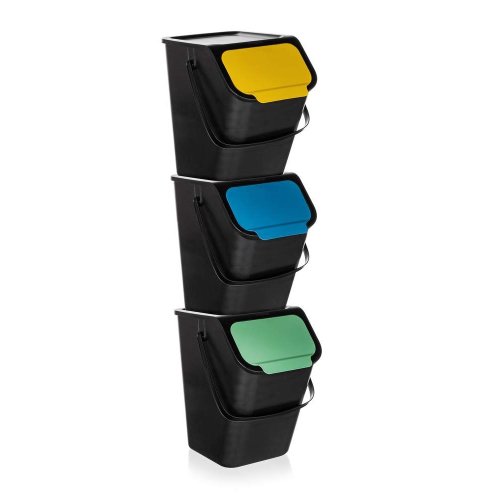 3dielna sada odpadkových košov na triedený odpad BINI, určená na triedenie skla, plastu a papiera. Koše sú vhodným pomocníkom v domácnosti, navyše sú stohovateľné a tým ušetríte priestor. Objem koša je 25 l. Rozmery 1 koša: 35,5 x 24,5 x 37 cm. Možno použiť si bez vreca na odpadky. Vhodný na odpadkové vrece s objemom 60 l.