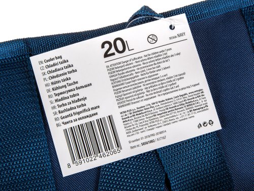 Chladiaca taška slúži na uchovanie potravín v chlade, je ideálna na pláž, piknik, kempovanie, v domácnosti. Vonkajší materiál je vysoko odolný polyester, vnútorný materiál je izolačná vrstva PE pena. Vnútorné hladké steny umožňujú veľmi ľahkú údržbu a očistenie v prípade znečistenia potravinami. Dodávaná v námornícky modrej farbe s bielymi pruhmi.