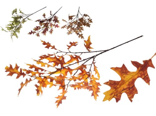 Dekoračná vetvička s listami o dĺžke 956 mm v rôznych farebných prevedeniach. Farebný mix zahŕňa rôzne odtiene, jednotlivé kusy sa môžu líšiť vzhľadom aj farebným ladením.