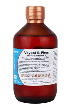Emulzia na minerálnej báze obsahujúca fosfor a vitamín B12. Doplnenie výživovej potreby organizmu. Podáva sa v období zvýšenej záťaže (pôrod, transport, teplotné výkyvy). Zloženie: Fosfor, vitamín B12, propylénglykol. Cieľový druh zvierat: Kone, žriebätá, dobytok, teľatá, ošípané, ovce, kozy, psy, mačky. Spôsob použitia: Do pitnej vody, krmiva alebo priamo. Dávkovanie: Kone a dobytok 10-50 ml Žriebätá a teľatá 5-25 ml Ošípané, ovce, kozy 3,5-15 ml Psy 0,5-5 ml Mačky 0,5-2,5 ml Podanie v potnej vode 0,2 –1,0 ml/l Podanie v kŕmnych automatoch 0,5–1,5 ml/l vody
