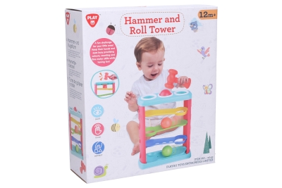 Veža s loptičkami a kladivkom. Obsahuje vežu, kladivko a 3 loptičky. Rozmery veže 24x10x27 cm.
