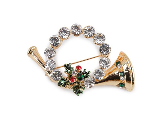 Elegantná vianočná brošňa bude zaujímavým doplnkom vášho odevu. Vďaka trblietavým brúseným kamienkom skvele dozdobia košele, saká, svetre, kabelky či čiapky. Brošňa má vzadu brošňový špendlík. Je na plastovej karte, ktorá sa dá zavesiť na predajné stojany.