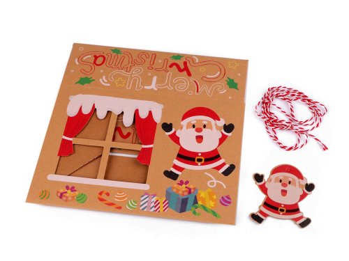Vianočná darčeková krabica s priehľadom a menovkou - hnedá prírodná Santa