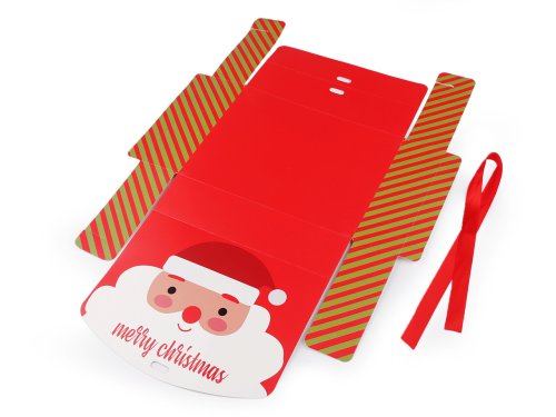 Vianočná krabička sa skvele hodí na zabalenie mikulášskeho aj vianočného darčeka. Zdobí ju potlač Santa Clausa. Krabičku dodávame v rozloženom stave (34 x 48 cm). Zložíte ju jednoducho podľa vyznačených ohýbacích okrajov. Súčasťou balenia je saténová stuha. Škatuľka nemá atest na potraviny. Pochúťky a iné maškrty odporúčame vložiť zabalené v sáčku.
