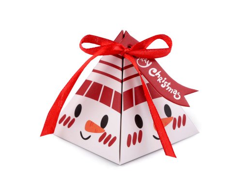Vianočná krabička pyramída zaujme deti aj dospelých. Hore sa ozdobne zaväzuje pomocou priloženej stužky. Súčasťou balenia je aj priväzovacia vlajočka Merry Christmas. Krabičku môžete použiť na drobné darčeky alebo ju naplniť dobrotami na Mikuláša. Dodávame ju v rozloženom stave (17,5 x 17,5 cm). Zložíte ju jednoducho podľa vyznačených ohýbacích krajov. Krabička nemá atest na potraviny, pochúťky a iné maškrty odporúčame vložiť zabalené v sáčku.