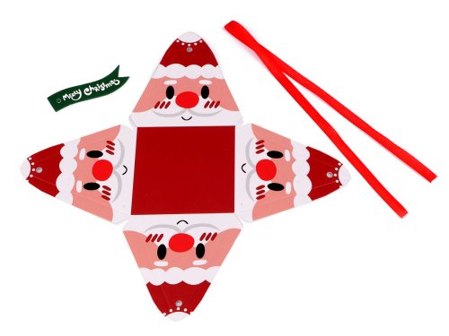 Vianočná krabička pyramída zaujme deti aj dospelých. Hore sa ozdobne zaväzuje pomocou priloženej stužky. Súčasťou balenia je aj priväzovacia vlajočka Merry Christmas. Krabičku môžete použiť na drobné darčeky alebo ju naplniť dobrotami na Mikuláša. Dodávame ju v rozloženom stave (17,5 x 17,5 cm). Zložíte ju jednoducho podľa vyznačených ohýbacích krajov. Krabička nemá atest na potraviny, pochúťky a iné maškrty odporúčame vložiť zabalené v sáčku.