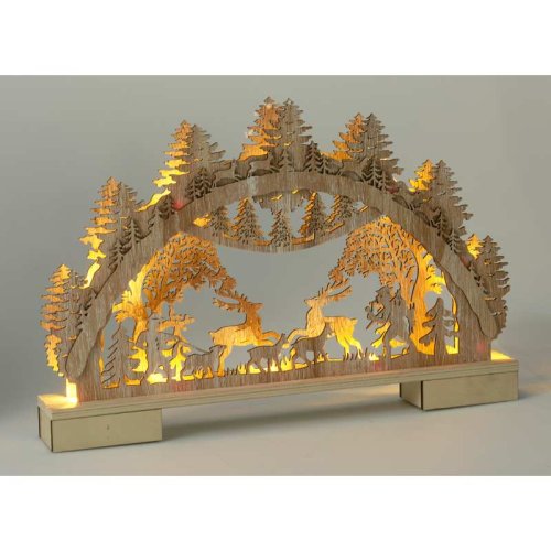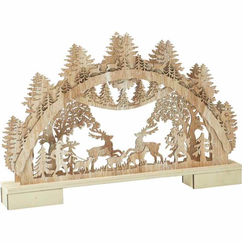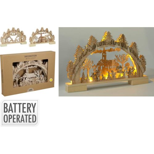 Čarovná vianočná dekorácia z prírodnej preglejky navodí príjemnú sviatočnú atmosféru v každom interiéri. Vďaka LED osvetleniu krásne žiari a ponúka dve varianty vianočných scén, ktoré zútulnia váš domov.