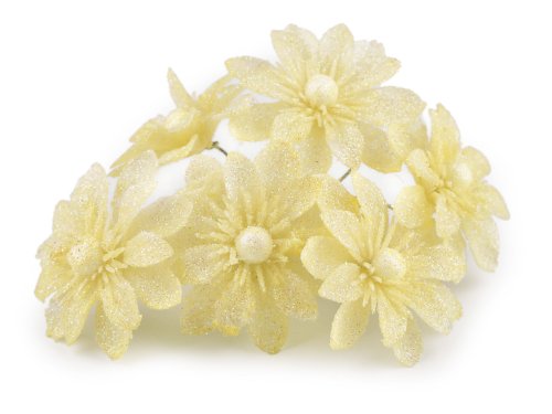 Rozkvitnuté vianočné hviezdy nesmú chýbať v žiadnom vianočnom aranžmáne. Ich povrch s trblietavými glitrami dodá vášmu domovu nádych elegancie a luxusu. Kvety vianočnej hviezdy sú pripevnené k ohybnému drôtiku, ktorým je možné ľahko manipulovať. V jednom zväzku je 6 kvetov vianočných hviezd. Použitie: Jednotlivé kvety môžete ľahko naaranžovať na vence, kvetinové väzby či sviatočnú tabuľu. Sú vhodné aj na zapichovanie do polystyrénových polotovarov.