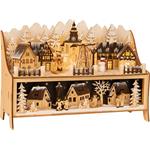 LED žiarivky poskytujú nepriame osvetlenie , ktoré má teplú žlto-oranžovú farbu a nebude tak dráždiť vaše oči. O napájanie malej dedinky sa starajú 2 AA batérie , čo zjednoduší umiestnenie celej dekorácie a ešte viac rozšíri možnosti vašej vianočnej výzdoby. Dekorácia vyobrazuje rôzne udalosti spojené so zimným obdobím , kedy napríklad obyvatelia jedného z domčekov práve stavajú snehuliaka či sa oddávajú ďalším zimným radovánkam. Domčeky majú tmavohnedé strechy s nánosmi snehu aj ďalšie drobné detaily a sú vyrobené z jemne vyrezávaného dreva. Použité drevo pochádza z lesníckych spoločností zapojených do zalesňovania , čo prispieva k zachovaniu prirodzene rastúcich lesov aj počas Vianoc.