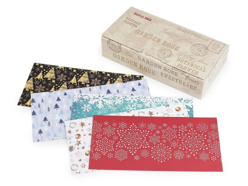 Vianočná papierová obálka je ideálnou voľbou pre tých, ktorí chcú darovať peniaze štýlovo as vianočnou náladou. Využijete ju nielen na peniaze, ale aj na darčekové poukazy a priania. Obálka je typu DL, dovnútra sa zmestí papier A4 preložený na tretiny. Vďaka kvalitnému a trvanlivému prúžku s lepidlom je listovú obálku ľahké zalepiť. V originálnom balení v krabičke nájdete 5 motívov po 20 ks – celkom je tam teda 100 ks obálok.