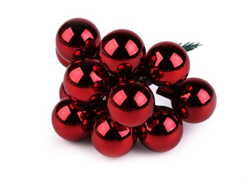 Vianočná sklenená banka na drôtiku Ø2,5 cm - mat a lesk - červená tmavá lesk (12 ks)