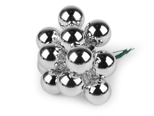 Vianočná sklenená banka na drôtiku Ø2,5 cm - mat a lesk - strieborná lesk (12 ks)