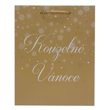 • Zlatá darčeková taška s bielym nápisom Kúzelné Vianoce