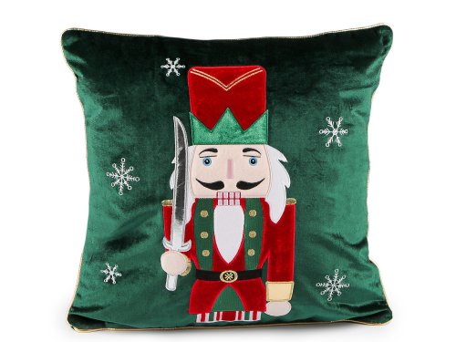 Zamatová obliečka na vankúš zdobí vianočný motív luskáčika. Do interiéru vnesie tradičné vianočné kúzlo a prispeje k pohodovej atmosfére, jeho jemný a hebký materiál poskytuje príjemný dotyk. Obliečka je jednostranná, veľmi kvalitná, motív luskáčika tvorí pevne našitá aplikácia s výšivkou a metalickými detailmi. Vločky sú vyšité. Okraj povlaku je olemovaný zlatou paspulkou. Zapína sa na zips. Toto je obliečka na vankúš, výplň môžete kúpiť zvlášť.