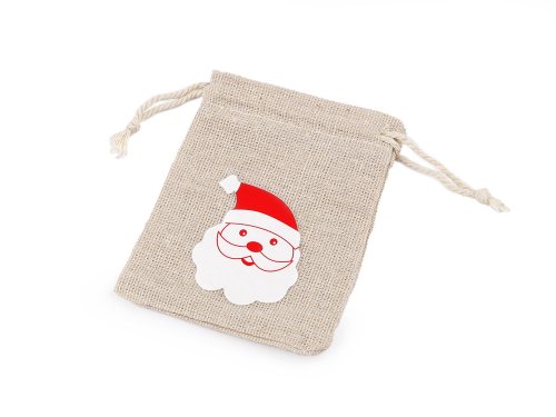 Darčekové bavlnené vrecko s vianočným obrázkom je skvelé na rýchle zabalenie malých darčekov. Materiál vrecúška svojim spracovaním pripomína jutu. Uzatvára sa pomocou krútenej šnúrky. Potlač je na prednej strane vrecka, je pogumovaná. Jeho veľkosť je vhodná na výrobu adventného kalendára.
