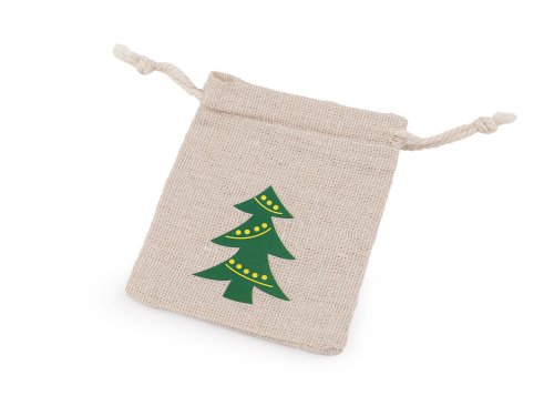 Darčekové bavlnené vrecko s vianočným obrázkom je skvelé na rýchle zabalenie malých darčekov. Materiál vrecúška svojim spracovaním pripomína jutu. Uzatvára sa pomocou krútenej šnúrky. Potlač je na prednej strane vrecka, je pogumovaná. Jeho veľkosť je vhodná na výrobu adventného kalendára.