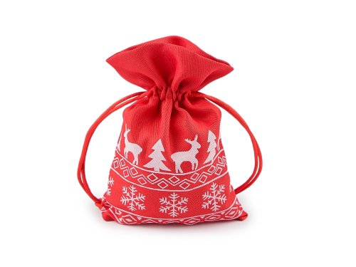 [Vianočné darčekové vrecúško je z oboch strán ozdobené potlačou sobov, stromčekov a vločiek. Môžete ho použiť na darčeky alebo ho naplniť mikulášskou nádielkou, ušetrí vám čas pri balení. Dá sa naaranžovať aj ako vianočné dekorácie. Sťahuje sa pomocou okrúhlych saténových šnúrok, darčeku dodá osobné kúzlo a pôvab.]