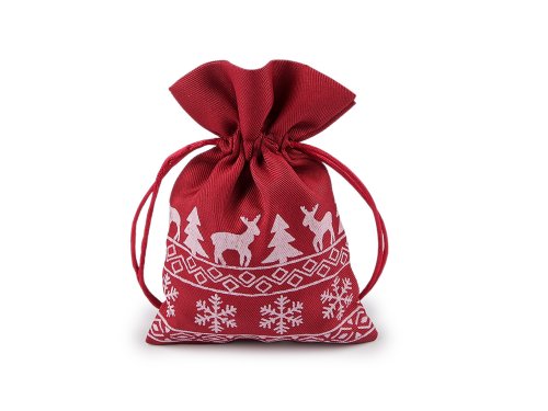 [Vianočné darčekové vrecúško je z oboch strán ozdobené potlačou sobov, stromčekov a vločiek. Môžete ho použiť na darčeky alebo ho naplniť mikulášskou nádielkou, ušetrí vám čas pri balení. Dá sa naaranžovať aj ako vianočné dekorácie. Sťahuje sa pomocou okrúhlych saténových šnúrok, darčeku dodá osobné kúzlo a pôvab.]