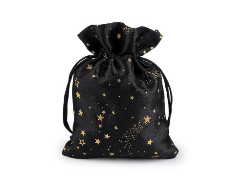Vianočné darčekové vrecúško hviezdy 13x18 cm - čierna (10 ks)