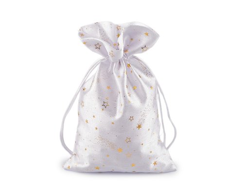 Vianočné darčekové vrecúško je na oboch stranách ozdobené potlačou zlatých metalických hviezdičiek. Pôsobí elegantne a luxusne, môžete ho použiť na darčeky alebo ho naplniť mikulášskou nádielkou, ušetrí vám čas pri balení. Dá sa naaranžovať aj ako vianočné dekorácie. Sťahuje sa pomocou okrúhlych saténových šnúrok, darčeku dodá osobné kúzlo a pôvab.